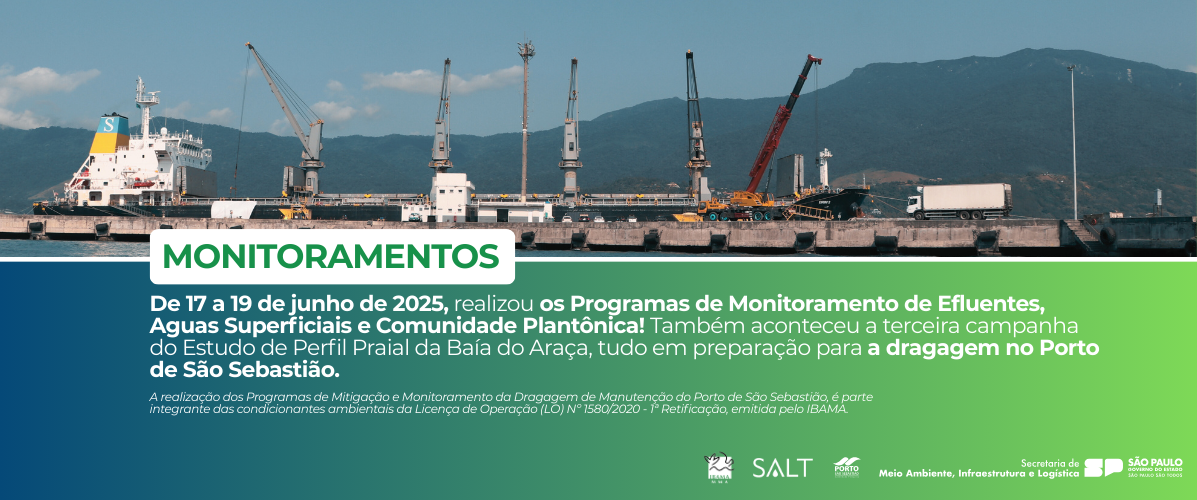 Também foi contratada a empresa SALT Engenharia e Meio Ambiente Ltda., responsável pelo monitoramento ambiental da obra de dragagem. O monitoramento visa acompanhar as atividades da obra e garantir a preservação do meio ambiente e das adjacências do Porto, com acompanhamento contínuo dos sedimentos, qualidade das águas, vida marinha e manguezais do entorno.